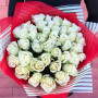 На фото букет из 43 белых роз. В составе: роза 41 шт, крафт-бумага 1 шт, атласная лента 1 шт, . Все цветы свежие и ароматные, букет красиво оформлен и отлично подходит для подарка. Доступна доставка цветов или самовывоз.