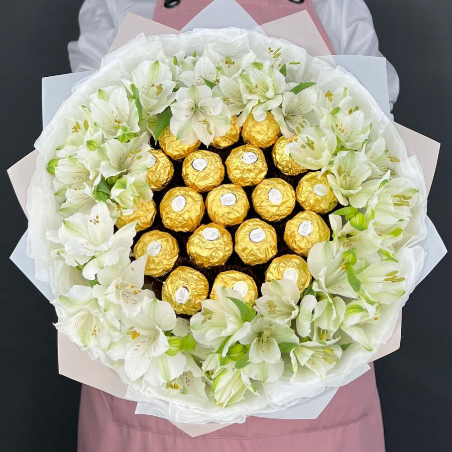 Букет из конфет Ferrero Rocher и и альстромерии в Армавире
