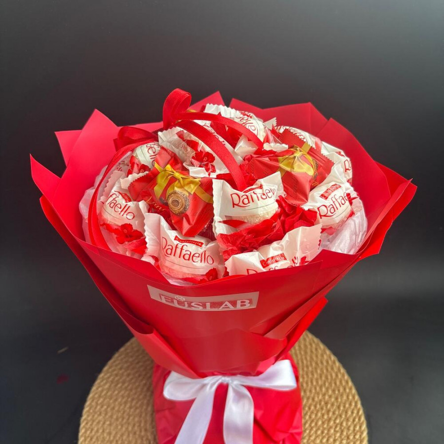 Конфеты Raffaello - 15 шт. Целлофан прозрачный - 1 шт. конфеты landrin - 3 шт. каркас технический с упаковкой - 1 шт.